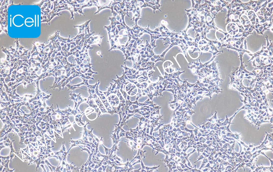 2. 該細(xì)胞貼壁能力較弱,培養(yǎng)時可酌情使用預(yù)鋪0.2%明膠的培養(yǎng)瓶/培養(yǎng)皿。建議使用Corning CellBIND(3289)培養(yǎng)瓶;完全培養(yǎng)液中需添加熱滅活胎牛血清。細(xì)胞生長不能過密,過密細(xì)胞容易脫落,脫落下來的細(xì)胞可以通過離心收集,加入0.05% Trypsin-0.53 mM EDTA消化后繼續(xù)培養(yǎng)。瓶中貼壁細(xì)胞可以加入0.25%(w / v)胰蛋白酶-0.53 mM EDTA于培養(yǎng)瓶中(T25瓶1-2mL,T75瓶2-3mL),置于37℃培養(yǎng)箱中消化1-2分鐘然后在顯微鏡下觀察細(xì)胞消化情況,若細(xì)胞大部分變圓并脫落,迅速拿回操作臺,輕敲幾下培養(yǎng)瓶后加入3-4ml含10%FBS的培養(yǎng)基來終止消化。