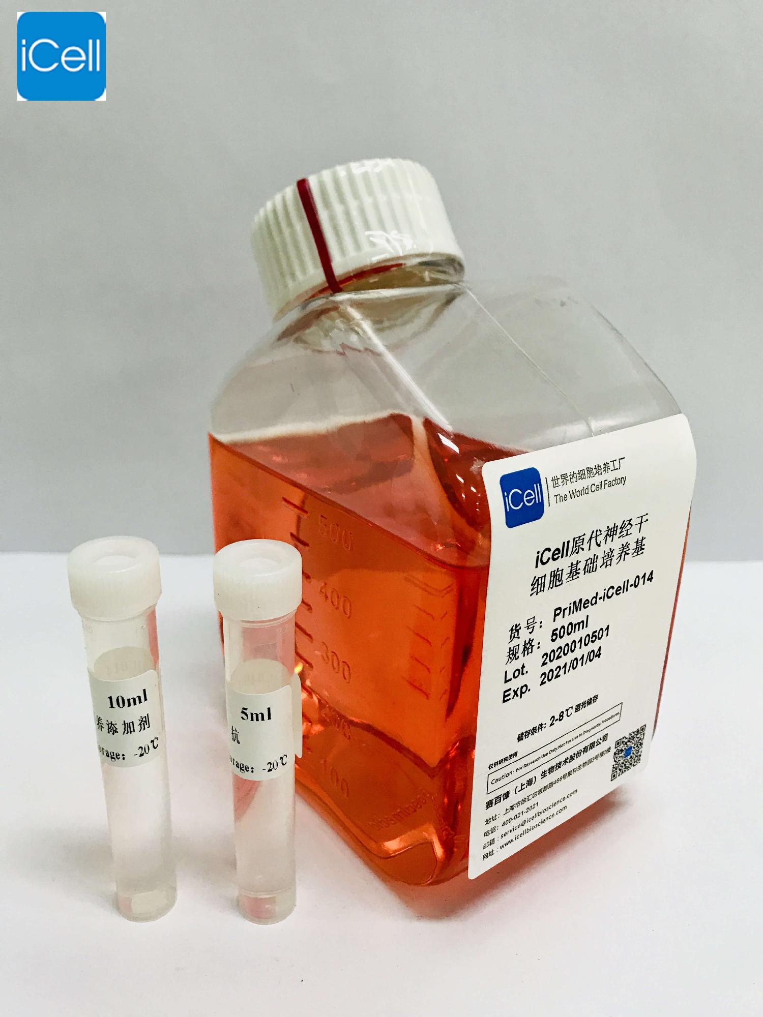 iCell原代神經(jīng)干細(xì)胞培養(yǎng)體系是一個(gè)為體外生長的人、大鼠、小鼠、兔等哺乳動(dòng)物的神經(jīng)干細(xì)胞設(shè)計(jì)的理想的無血清完全培養(yǎng)基方案。本體系是一個(gè)基于碳酸氫鹽的緩沖體系,可以在孵育的5%的CO2的氣體環(huán)境下維持一個(gè)圍繞pH7.2的酸堿緩沖體系。本體系是一個(gè)無菌的液體混合系統(tǒng),其中包含必須和非必須氨基酸、維生素、激素、微量元素、B27等生長因子和一些其他的有機(jī)和無機(jī)化合物。本培養(yǎng)體系是基于固定配方配制的液態(tài)培養(yǎng)體系,可以為體外培養(yǎng)的人、大鼠、小鼠、兔等哺乳動(dòng)物的神經(jīng)干細(xì)胞提供一個(gè)確定適宜的平衡營養(yǎng)環(huán)境,并且可以選擇性的促進(jìn)神經(jīng)球結(jié)構(gòu)的形成,同時(shí)促進(jìn)神經(jīng)干細(xì)胞的增殖。